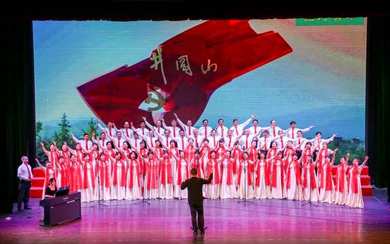 一曲曲动人的旋律悠扬悦耳,一声声激情的演唱豪迈高亢;演出结束后,参演人员与离退处和老年大学、老文体协会的领导在台上合影。