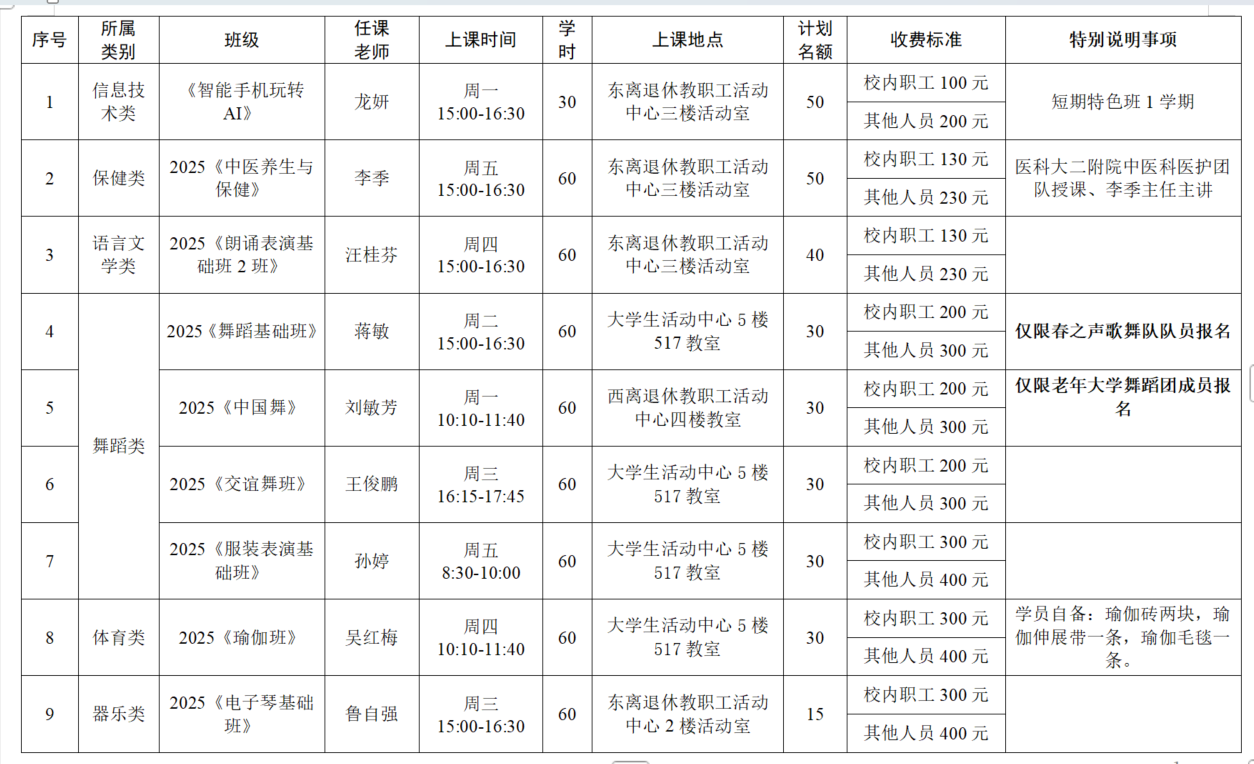 2.太阳集团2138网址老年大学2025-2026学年新课班级招生计划表