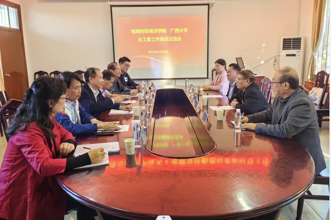 会上, 欧玉乐代表校关工委对王布宏一行表示热烈欢迎,并向大家介绍了学校和校关工委工作基本情况。王布宏介绍了海南热带海洋学院的基本情况和关工委的经验做法。与会人员围绕如何做好高校关工委工作开展交流与讨论。
