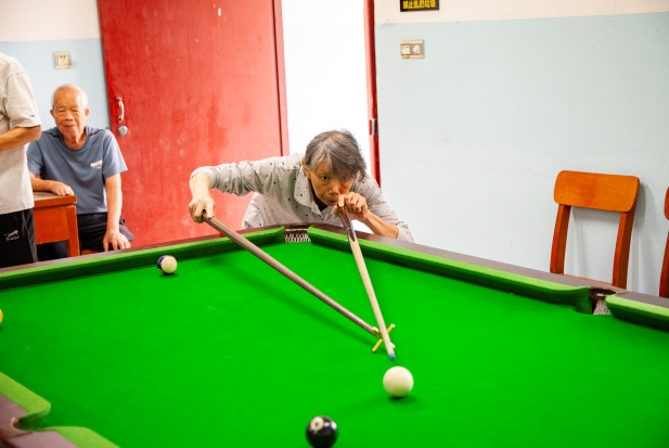 共有16名桌球爱好者参加本次比赛,最大年龄的超过80岁。比赛通过抽签分成A、B两组,采用三局二胜、单淘汰赛制决出名次。