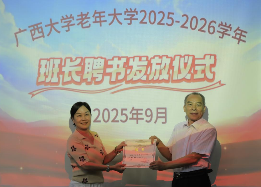 会议伊始,离退处副处长、老年大学副校长张浩宣读了聘任新学年班长的文件和班长职责,随后常务副校长黄四弟为各位班长逐一颁发聘书。每一份聘书承载着信任与责任,班长们双手接过,脸上洋溢着笑容。这一仪式不仅是对每位班长能力的认可,更是对其未来工作的殷切期望。